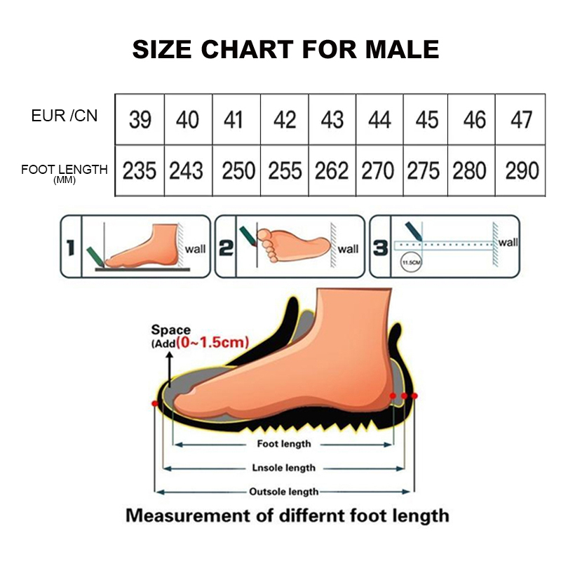 3. Please do not measure the insole length, It is different from the foot length.